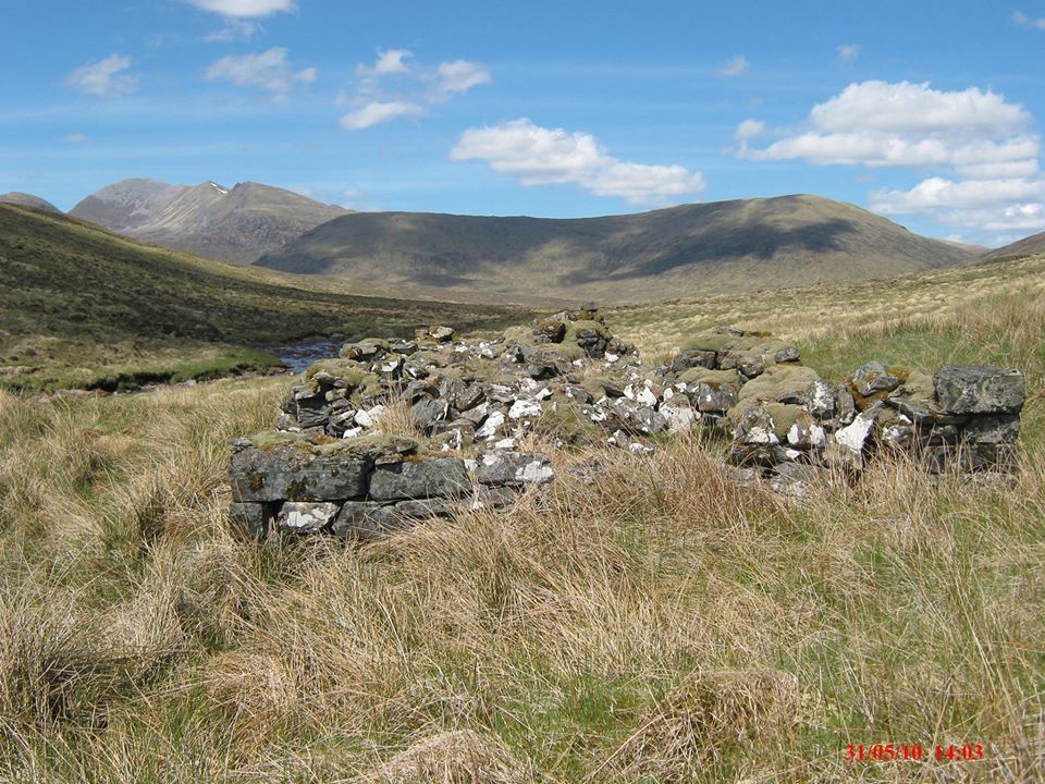 By 1860, the family – Robert, Sarah and children James, aged 5 and Robert aged just 2, have moved again and can be found in a shepherd’s cottage in the remote Glen Tanagaidh in the parish of South Gairloch, north of Kinlochewe. The cottage, of which ruins can possibly still be found, sits on flat fertile ground beside a burn, emerging from the Heights of Kinlochewe.