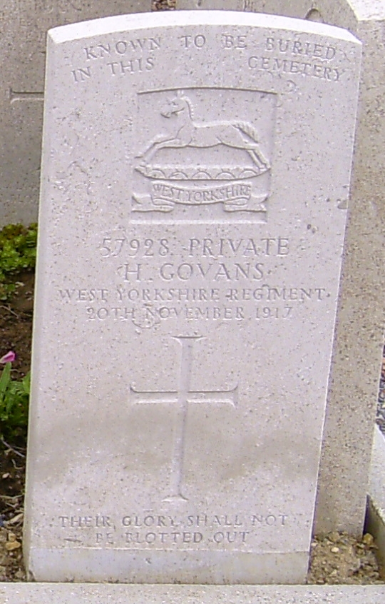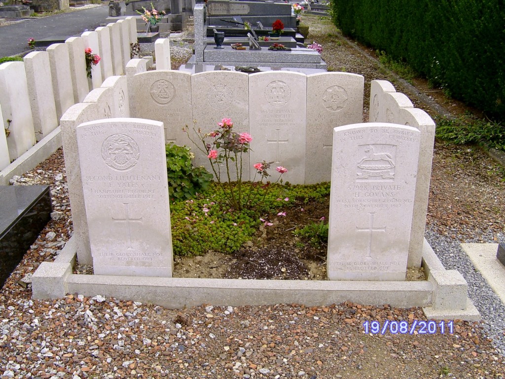 Henry, tragically, was one of those who lost his life. He was twenty-five-years-old. He was hit by the German artillery bombardment on the first day of the battle, 20 November 1917. A friend asked how I know this was how he died. A good question. Henry’s records only state that he was killed in action. However, on his gravestone in the Marcoing Communal Cemetry in Nord-Pas-de Calais in France, it states, ‘Known to be buried in this cemetery.’