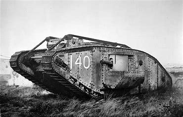 The Mark IV tank hurriedly entered service in May 1917. It was to be the most prolific tank used in WWI and also the first tank to be mass produced. It carried a mixture of Lewis machine guns and a six-hundredweight gun that had a 100 degree arc of fire. Only the starboard gun fired straight ahead.